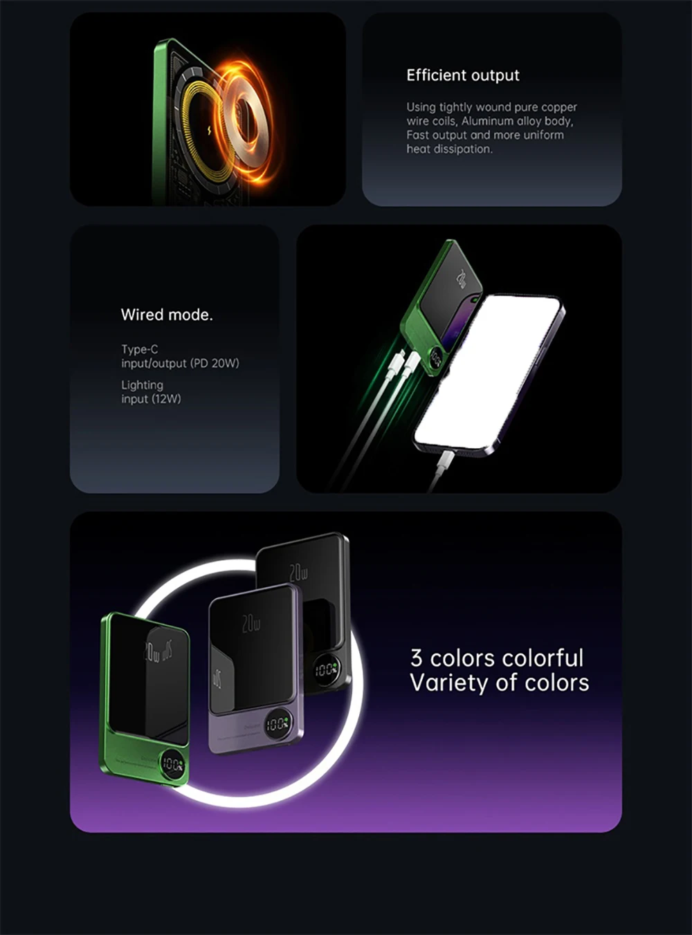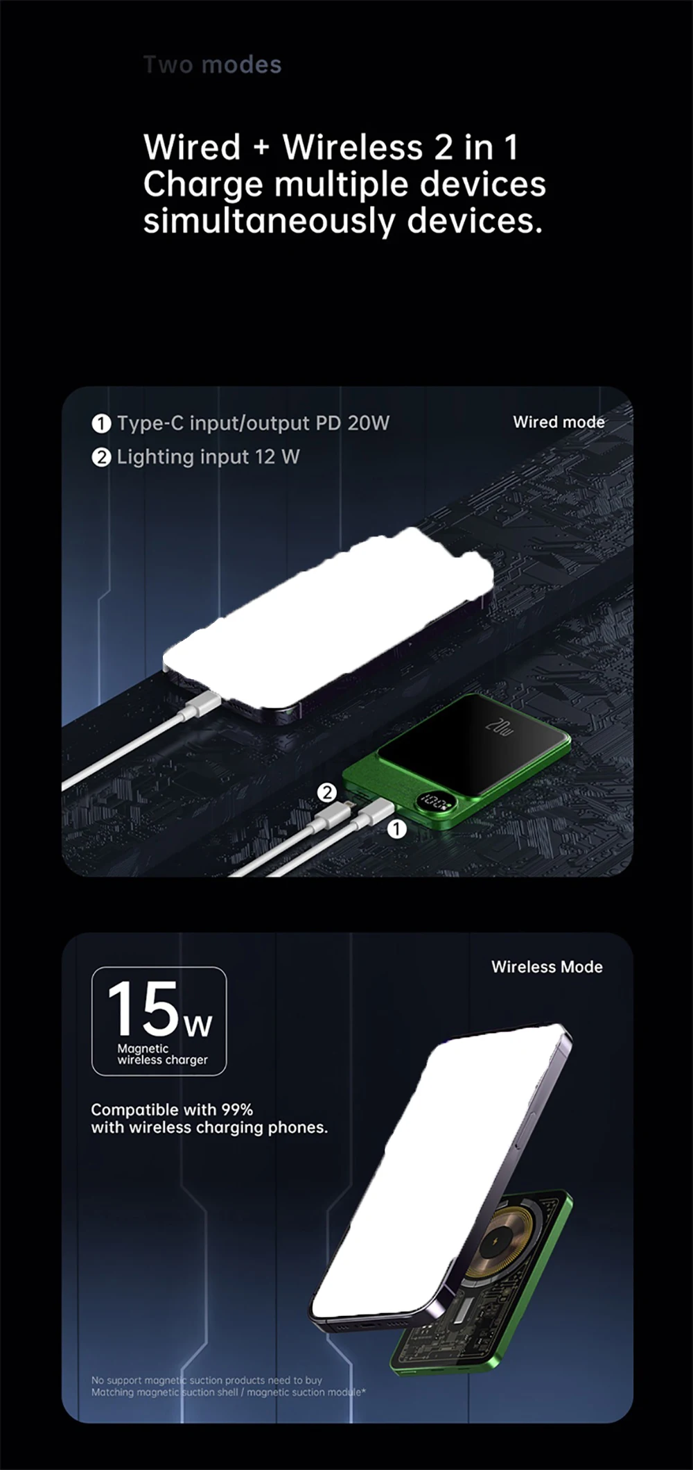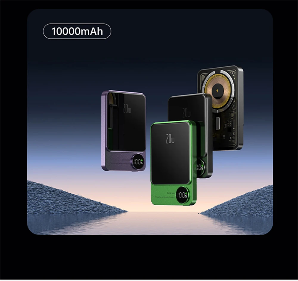 10000mAh PD20W Transparent Alloy Magnetic Powerbank For Magsafe Power Bank Wireless Fast Charger For iPhone 17 16 15 14 13 12 11